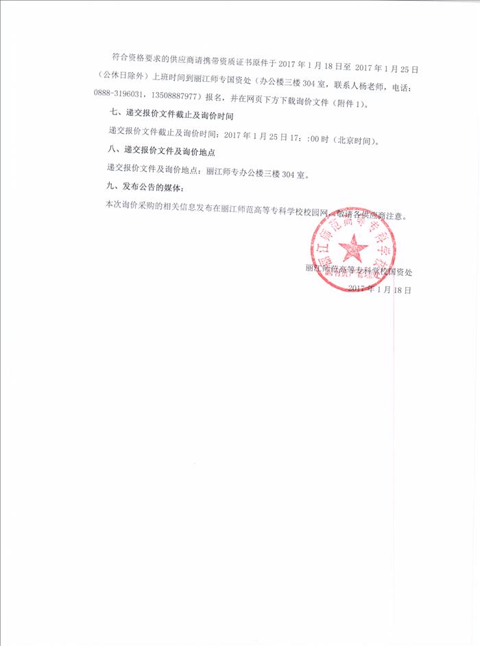 丽江师范高等专科学校人事档案整理设备与服务项目询价采购公告