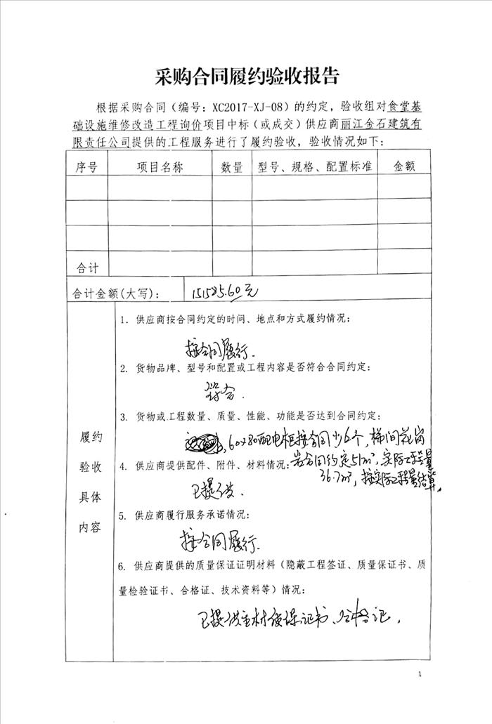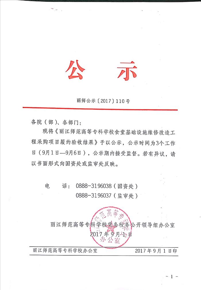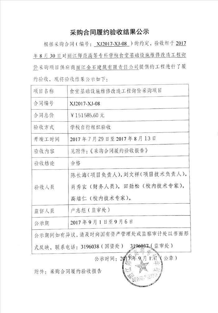 丽江师范高等专科学校食堂基础设施维修改造工程采购项目履约验收结果