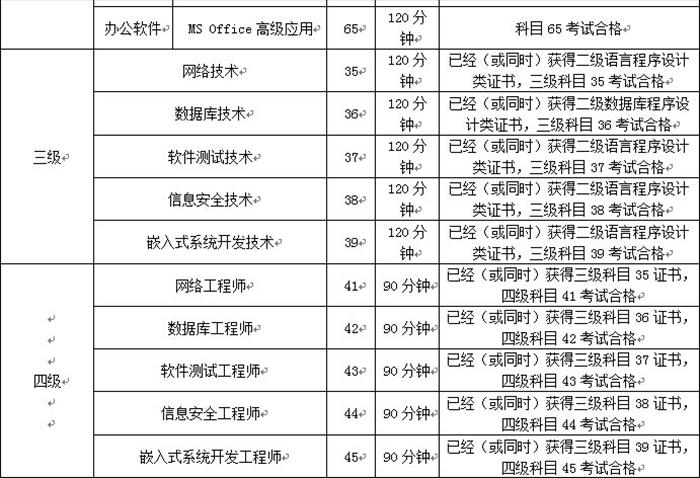 四级:工程师级。四级证书面向已持有三级相关证书的考生,考核计算机专业课程,是面向应用、面向职业的工程师岗位证书。四级证书表明持有人掌握从事信息技术工作的专业技能,并有系统的计算机理论知识和综合应用能力。
