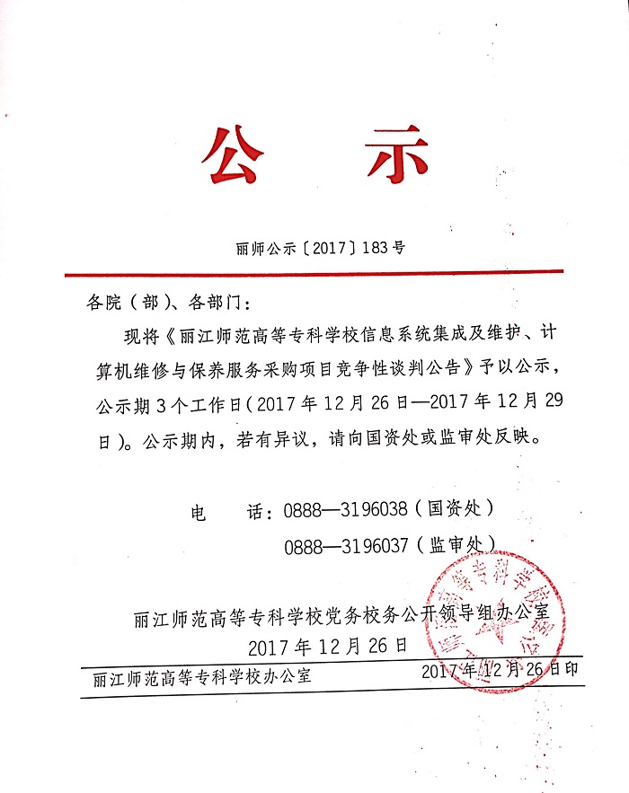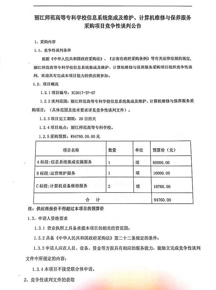 附件:丽江师范高等专科学校信息系统集成及维护、计算机维修与保养服务竞争性谈判文件.doc