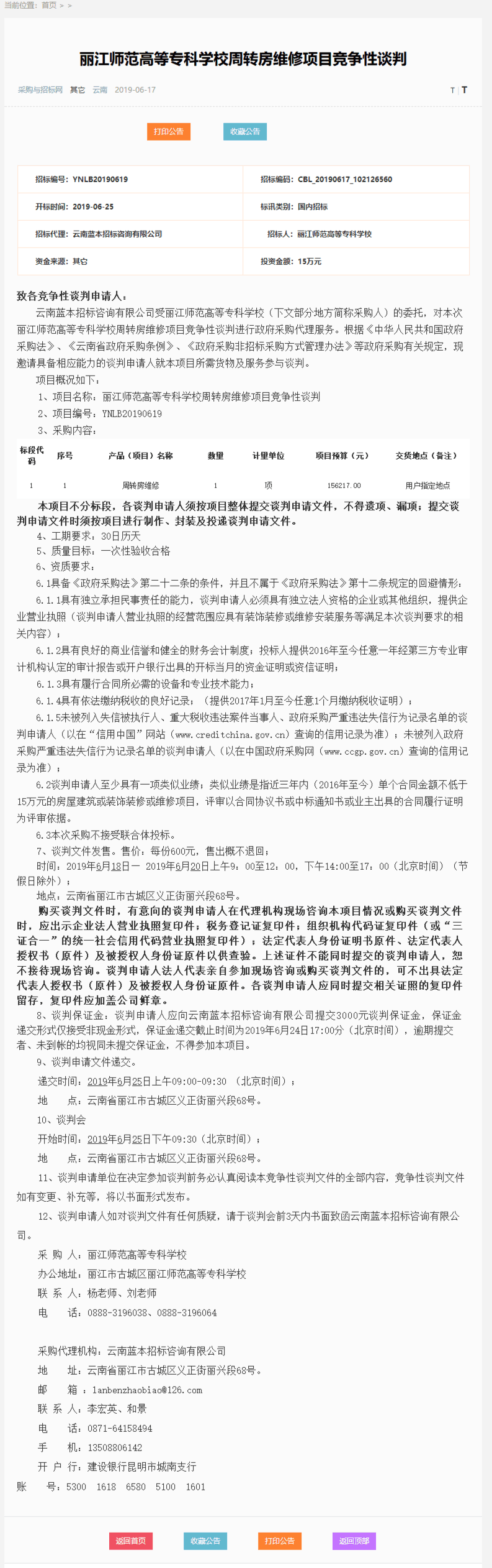 丽江师范高等专科学校周转房维修项目竞争性谈判公告