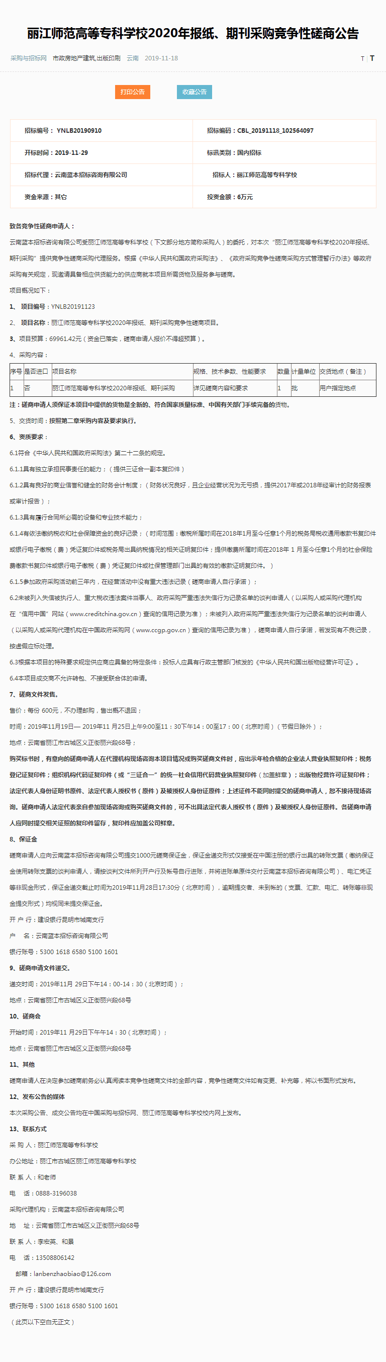 丽江师范高等专科学校2020年报纸、期刊采购竞争性磋商公告