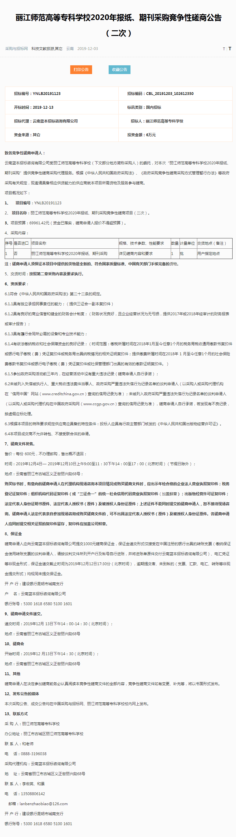 丽江师范高等专科学校2020年报纸、期刊采购竞争性磋商公告