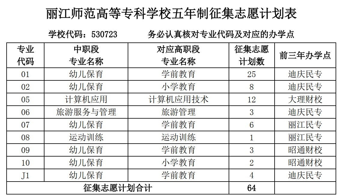 参加bat365官网征集志愿的考生,建议第一个志愿学校一定要填写“丽江师范高等专科学校”,学校代码为530723。