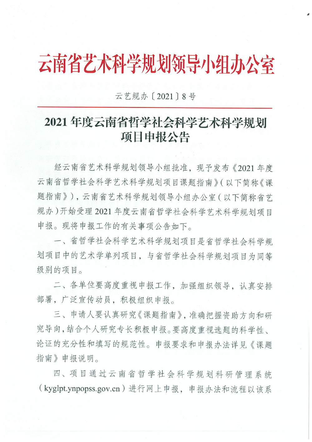 2021年度云南省哲学社会科学艺术科学规划项目申报公告