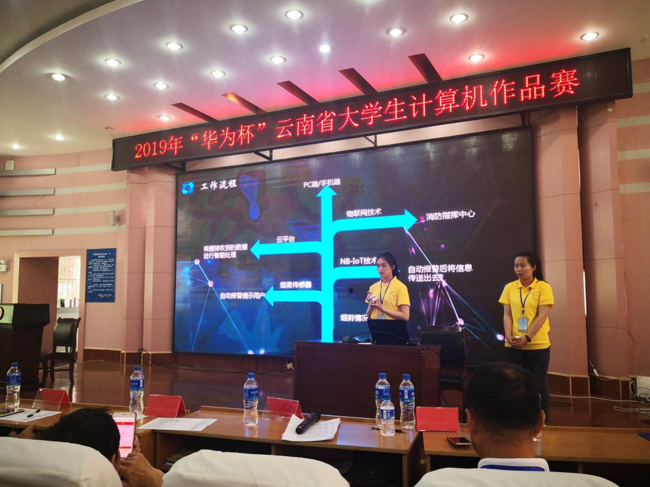 2019年“华为杯”云南省大学生计算机作品赛于2019年5月24、25日在玉溪师范学院举行,bat365官网推荐的由应用技术学院张鑫老师指导的作品《基于NB-IoT技术的学生宿舍消防预警系统》(参赛学生:2017级物联网应用技术班周玉佐、朱常艳)获得二等奖,以专科组第一名的成绩获得今年七月在澳门举行的“泛珠三角计算机作品赛”的决赛资格。由杨文斌老师指导的作品《校园共享平台》(参赛学生:2017级计算机应用技术班贾钏楠、李啟磊)获得优秀奖。