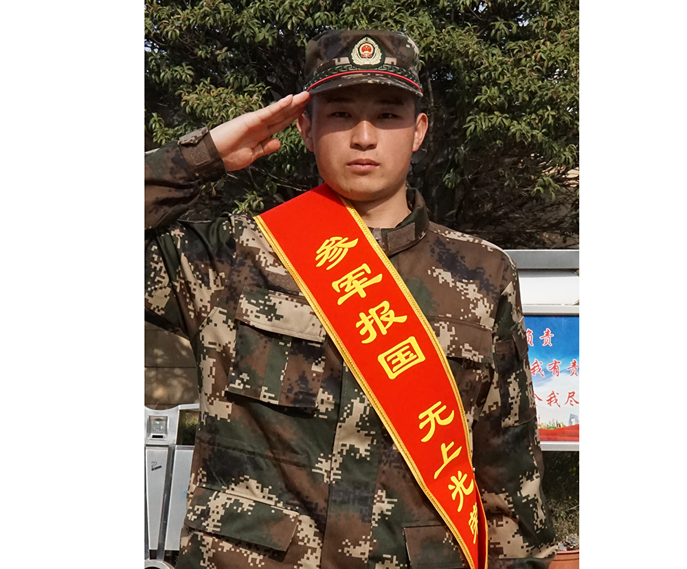 bat365官网应征入伍新兵艺术学院王朝党同学身着军装,胸带红花整装待发参加了此次欢送大会。