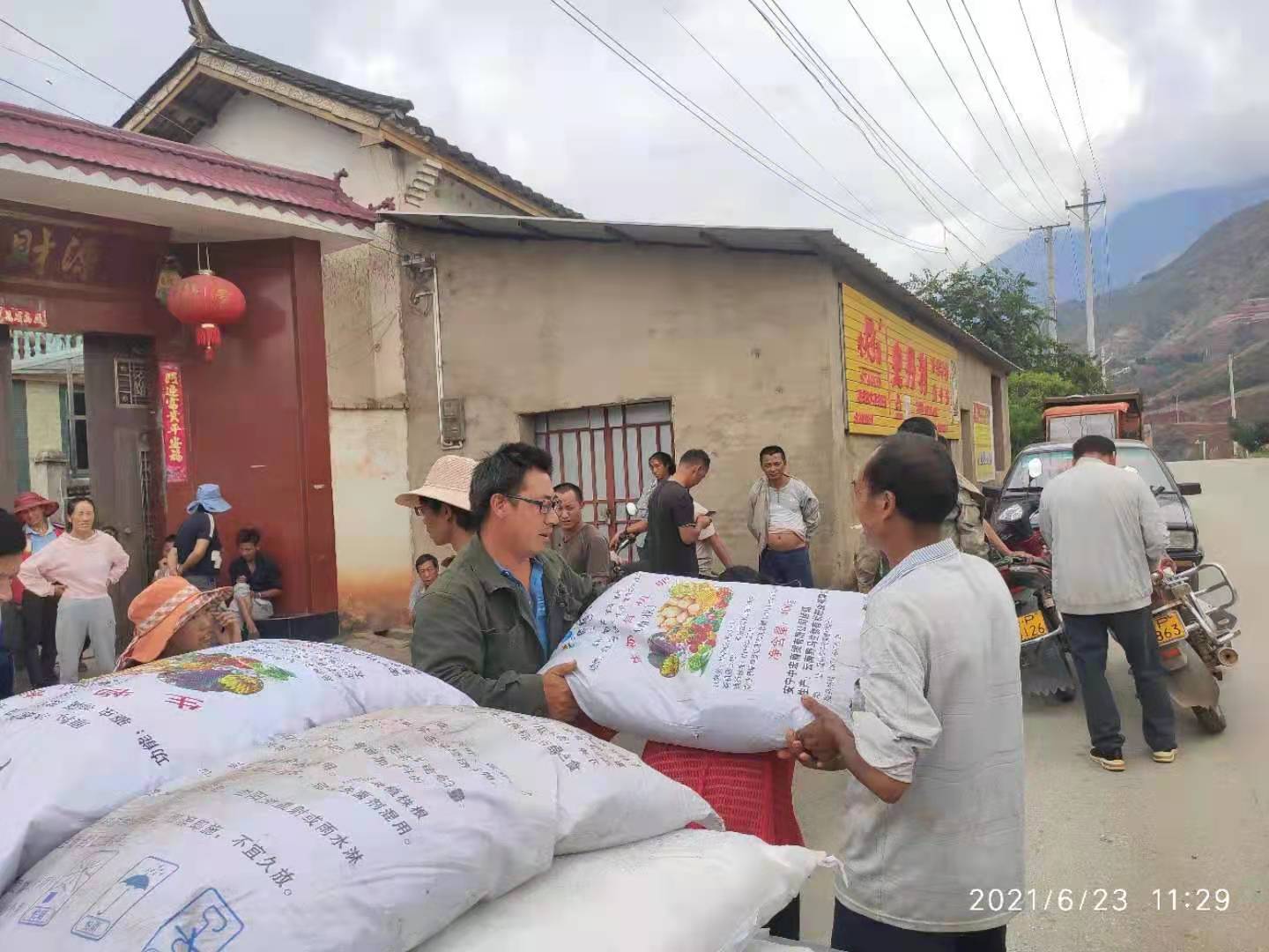 活动现场,学院党总支还向光明村五郎坪上村、中村和下村部分农户捐赠了1吨多的化肥,助力农户开展生产活动。