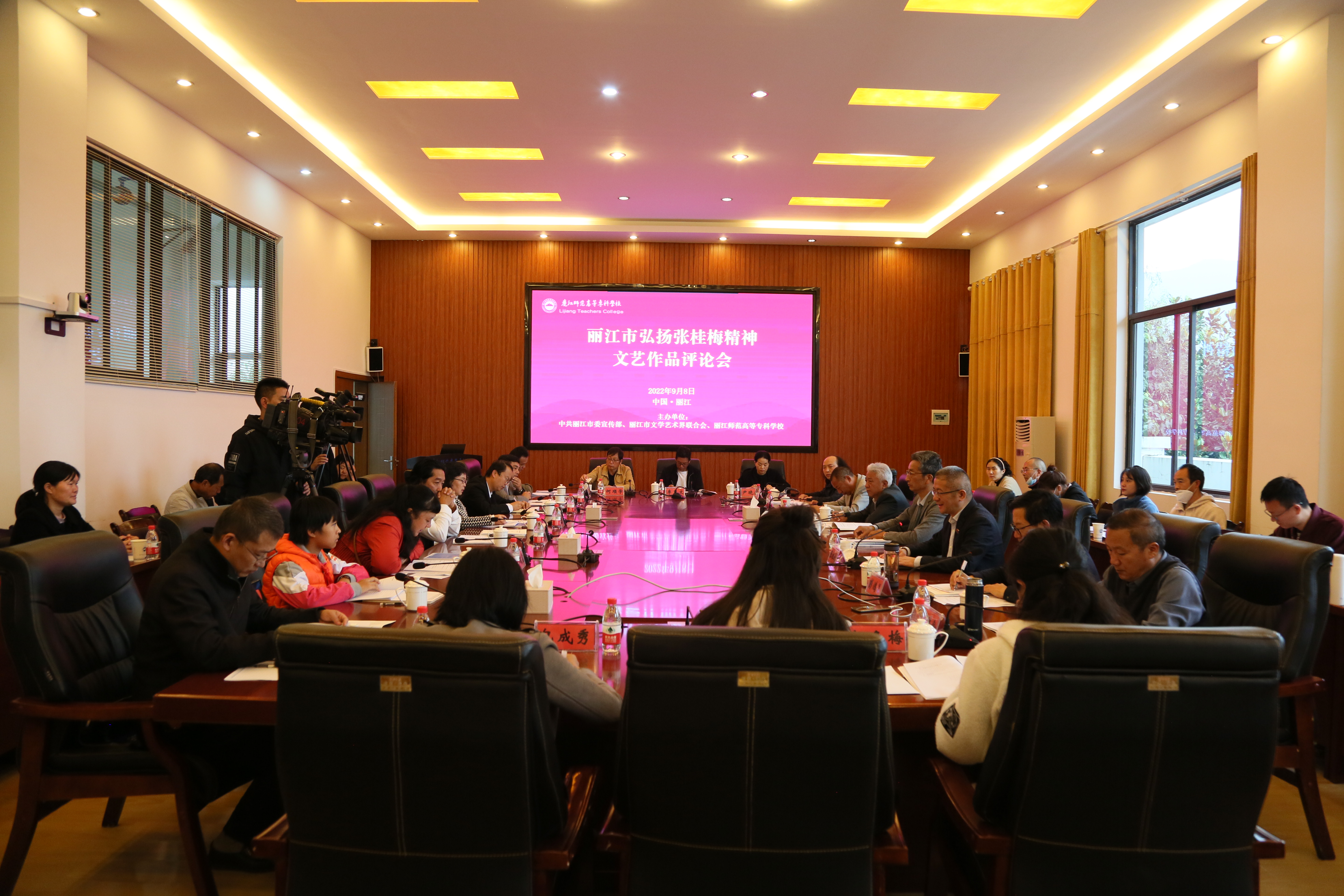 在第38个教师节来临之际,9月8日上午,由丽江市委宣传部、市文联与丽江师专联合举办的丽江市弘扬张桂梅精神文艺作品评论会在丽江师专举行。评论会以“弘扬张桂梅铸魂育人精神,庆祝第38个教师节,迎接党的二十大胜利召开”为主题,分为启动仪式和评论研讨两个环节进行。丽江市委宣传部常务副部长和文武、丽江师专党委书记张祖武、丽江市委宣传部部务委员陈国光,丽江市文联党组书记、主席鲁若迪基等参加。会议由丽江师专党委副书记彭鸿昌主持。
