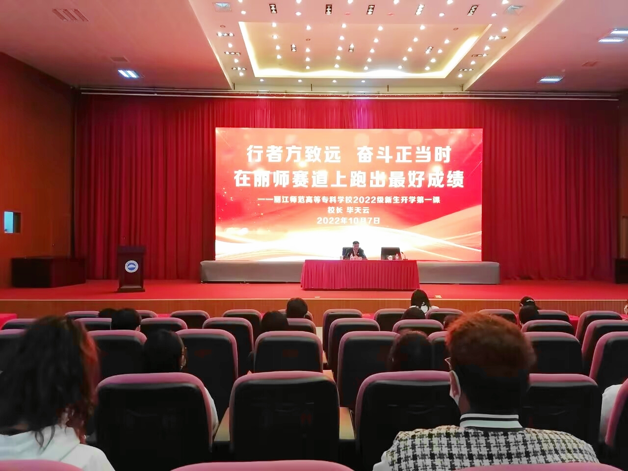 10月7日下午,党委副书记、校长毕天云以“行者方致远,奋斗正当时——在丽师赛道上跑出最好成绩”为题,为2022级新生上了开学第一课。