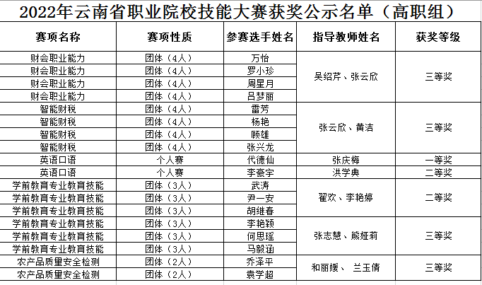 为贯彻落实全国职业教育大会精神,推动现代职业教育高质量发展,建设技能型社会,根据《云南省教育厅关于举办2022年云南省职业院校技能大赛的通知》要求,学校认真组织师生参加云南省职业院校技能大赛。由25名指导教师分别对参赛的12支团队进行悉心指导。目前,高职组的53个赛项已全部完成。最终,学校荣获一等奖1项,二等奖2项,三等奖4项。
