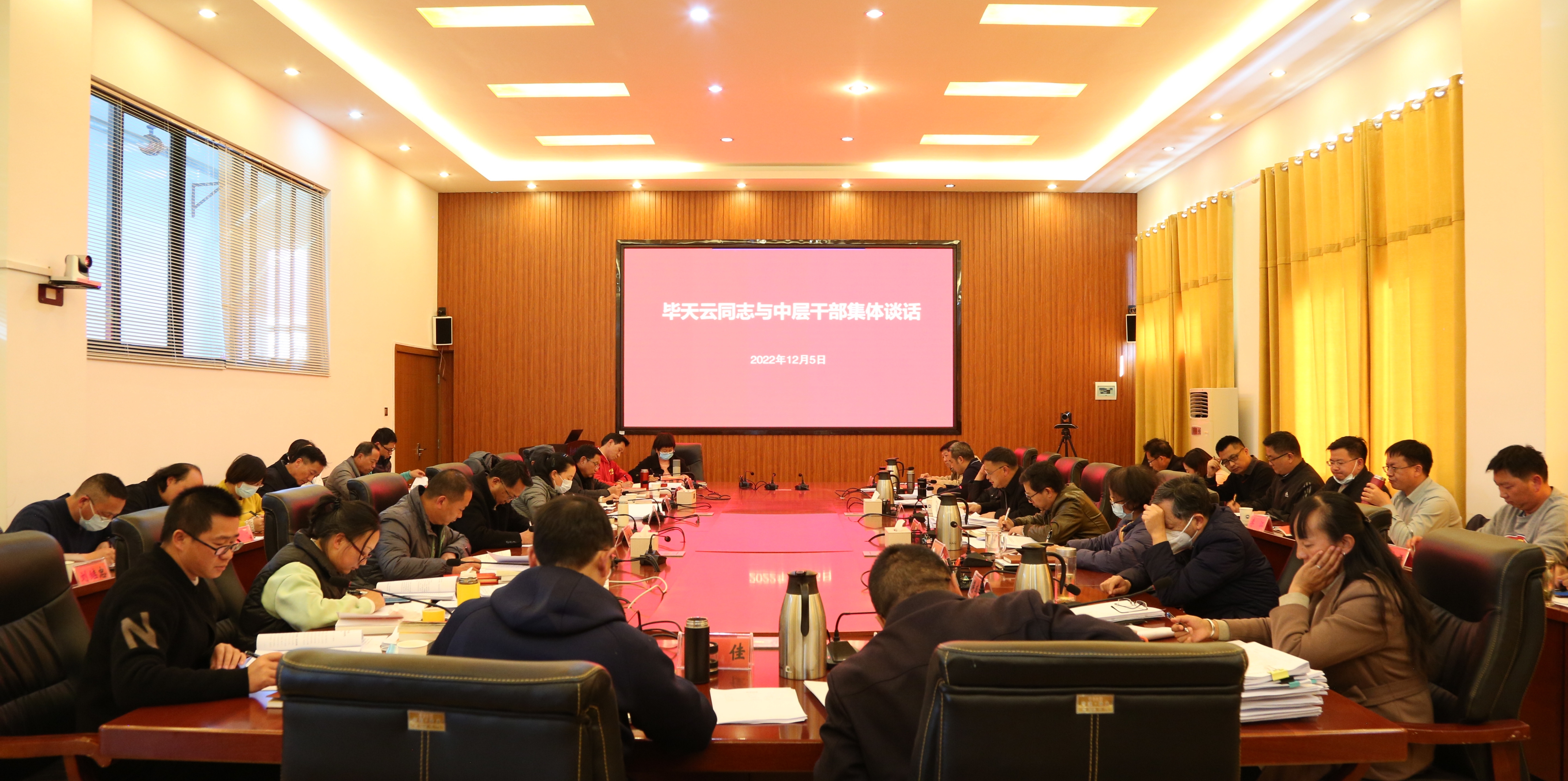12月5日,党委书记毕天云以“团结奋斗”为主题与中层干部集体谈话。学校党委班子成员、各职能部门负责同志和学院党政负责同志参加。