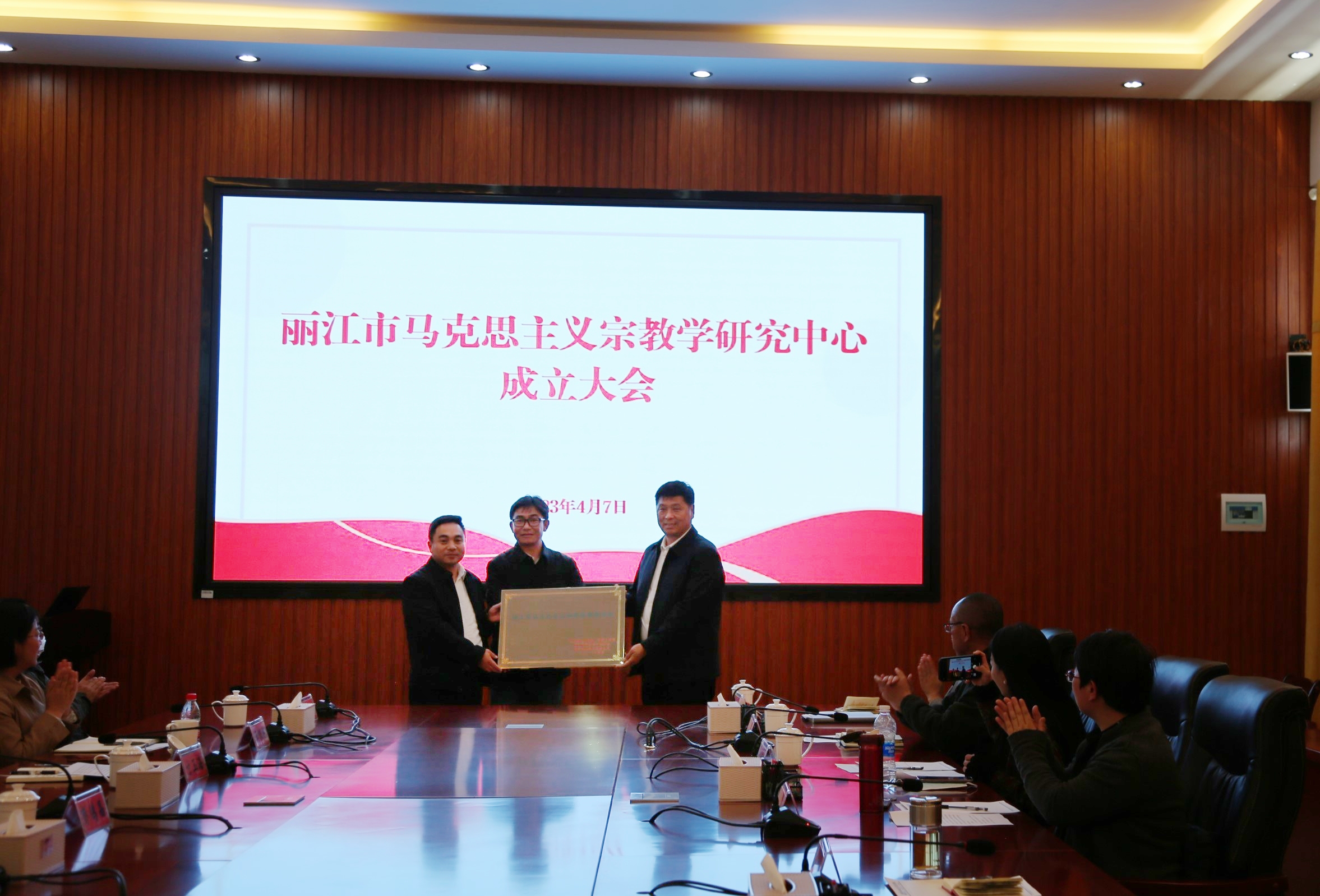 和洪珍表示,市委统战部、市民族宗教局与丽江师专本着共同协商、发挥优势、合作共赢的原则成立丽江市马克思主义宗教学研究中心,这是丽江市委市政府贯彻落实全国、全省、全市宗教工作会议精神的具体举措,也是助力丽江推进宗教中国化和宗教事务治理现代化工作的重要载体。希望大家发挥业务专长,以主人翁的心态共同将宗教理论与实践课题做好,共同把研究中心办好,真正让研究中心发展成为党委、政府科学决策的参谋助手。