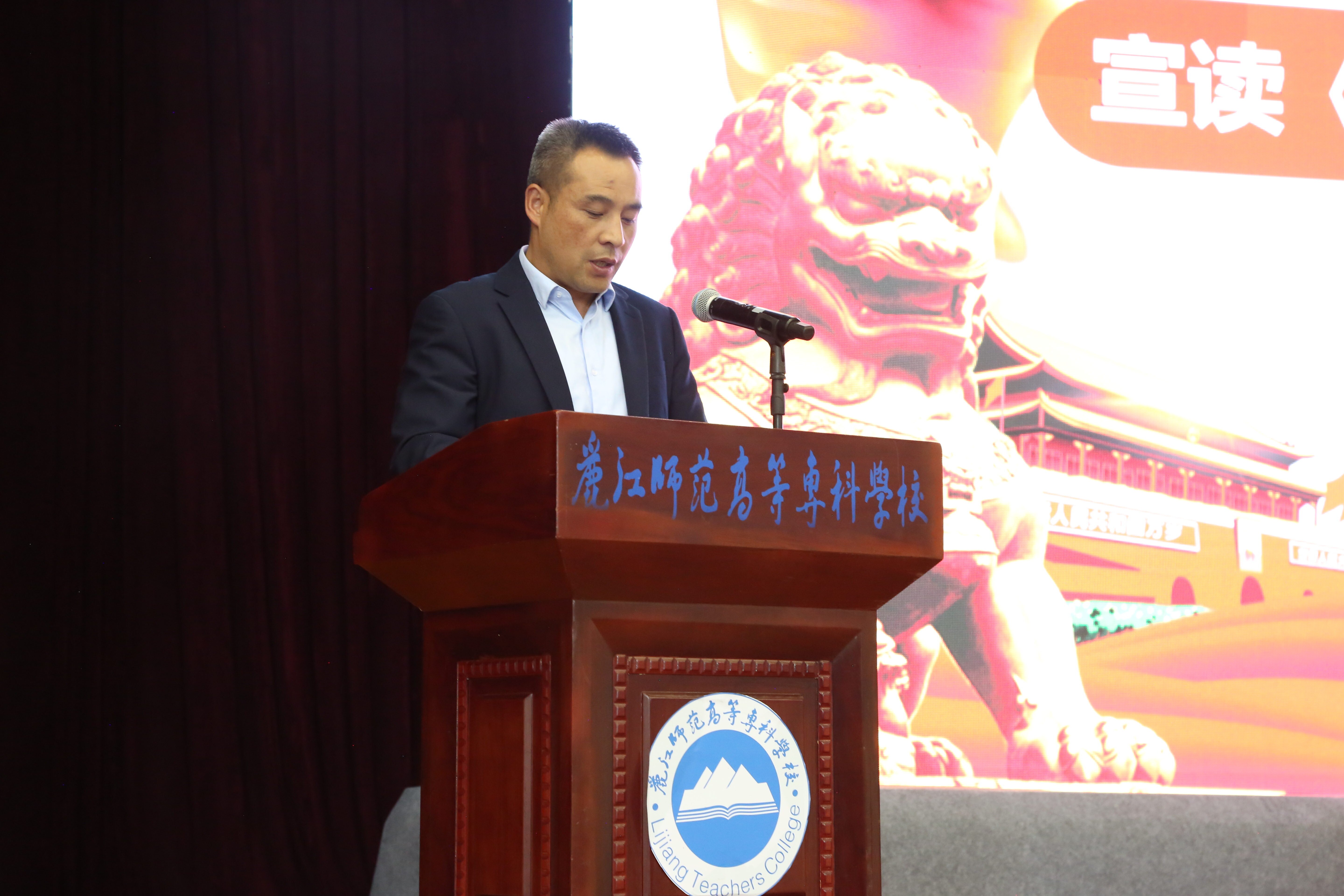 张兰胜宣读《中共丽江师范高等专科学校委员会关于表彰2022年征兵先进单位的决定》。