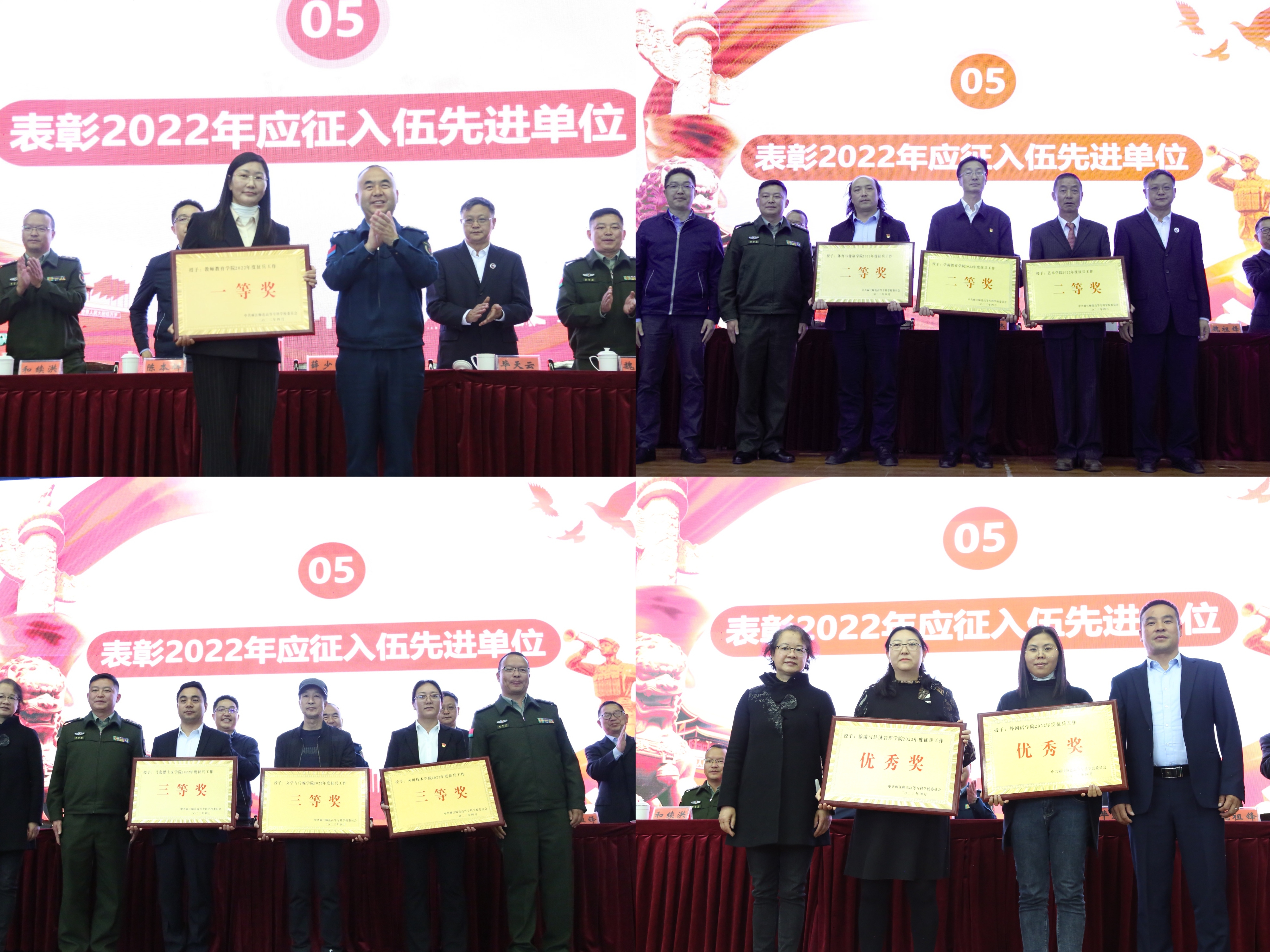会议表彰了2022年征兵先进集体。教师教育学院党总支书记和梅代表征兵先进集体发言。她从加强组织领导、重视政策宣传、组织宣讲座谈、指导重点群体、对标体检标准、指明成长路径、算好经济账目等七个方面分享了开展应征入伍工作的经验。