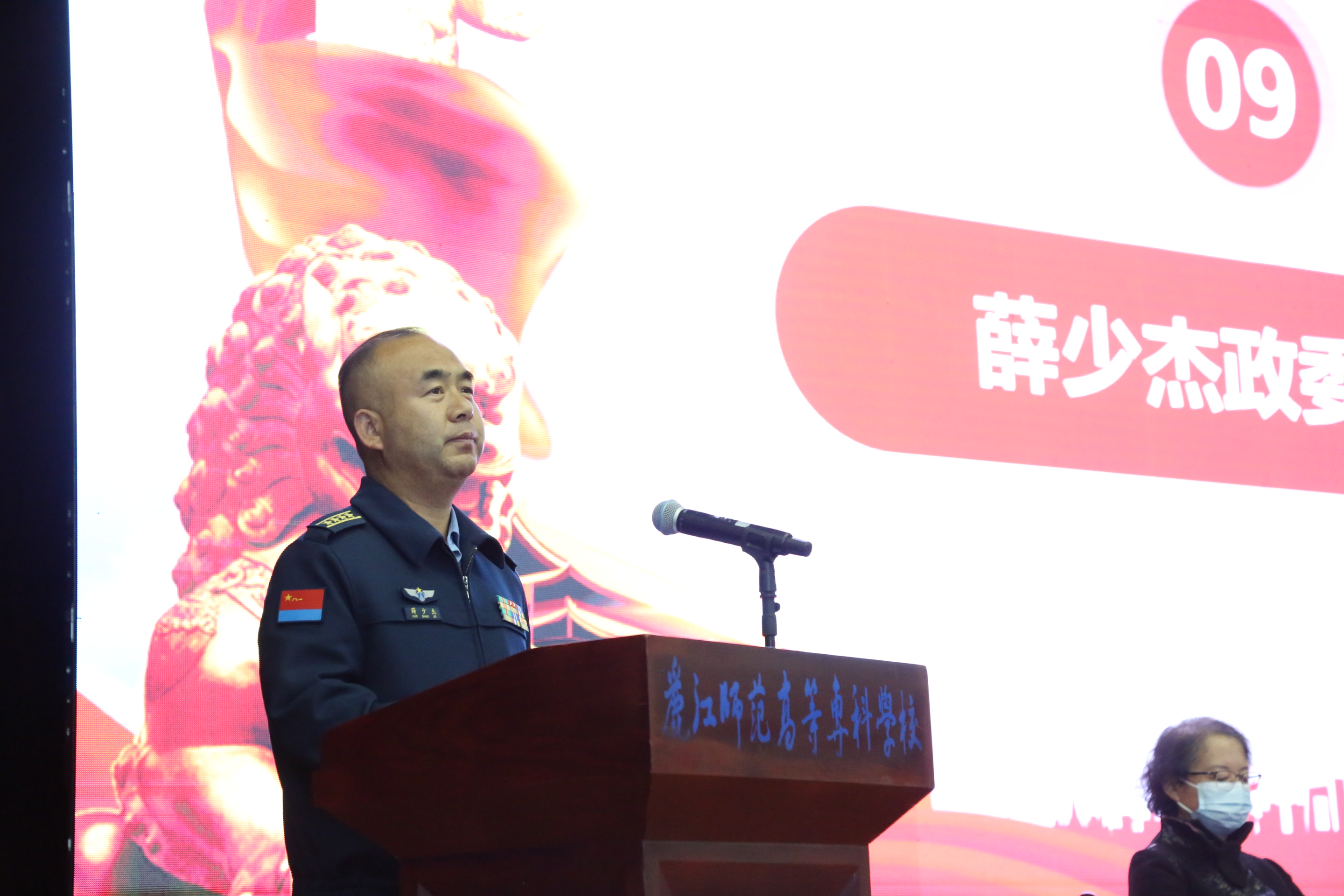 薛少杰讲话。他充分肯定了学校在征兵工作、学生军训、国防教育等武装工作方面取得的成绩,代表军分区党委对学校表示感谢。同时,向师生介绍了新修订的《征兵工作条例》,他希望大家再接再厉,军地合力共同推进丽江市武装工作建设发展迈向新台阶,努力为全市国防教育事业贡献自己的力量。
