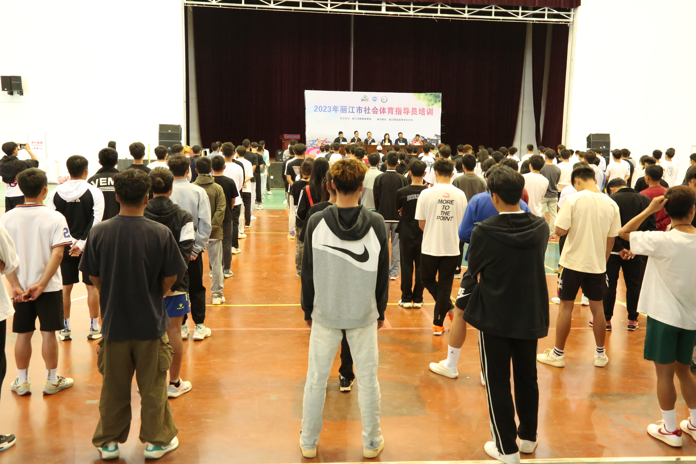 5月12日下午,丽江市社会体育指导员培训基地授牌仪式暨2023年社会体育指导员培训启动仪式在学校体育馆举行。丽江市教育体育局调研员胡建英、学校党委副书记彭鸿昌,云南师范大学体育学院原院长、体育与健康学院名誉院长孙振武,体育与健康学院副院长邢维新、培训讲师李永强以及全体参训学员参加启动仪式,仪式由体育与健康学院党总支副书记葛锦润主持。