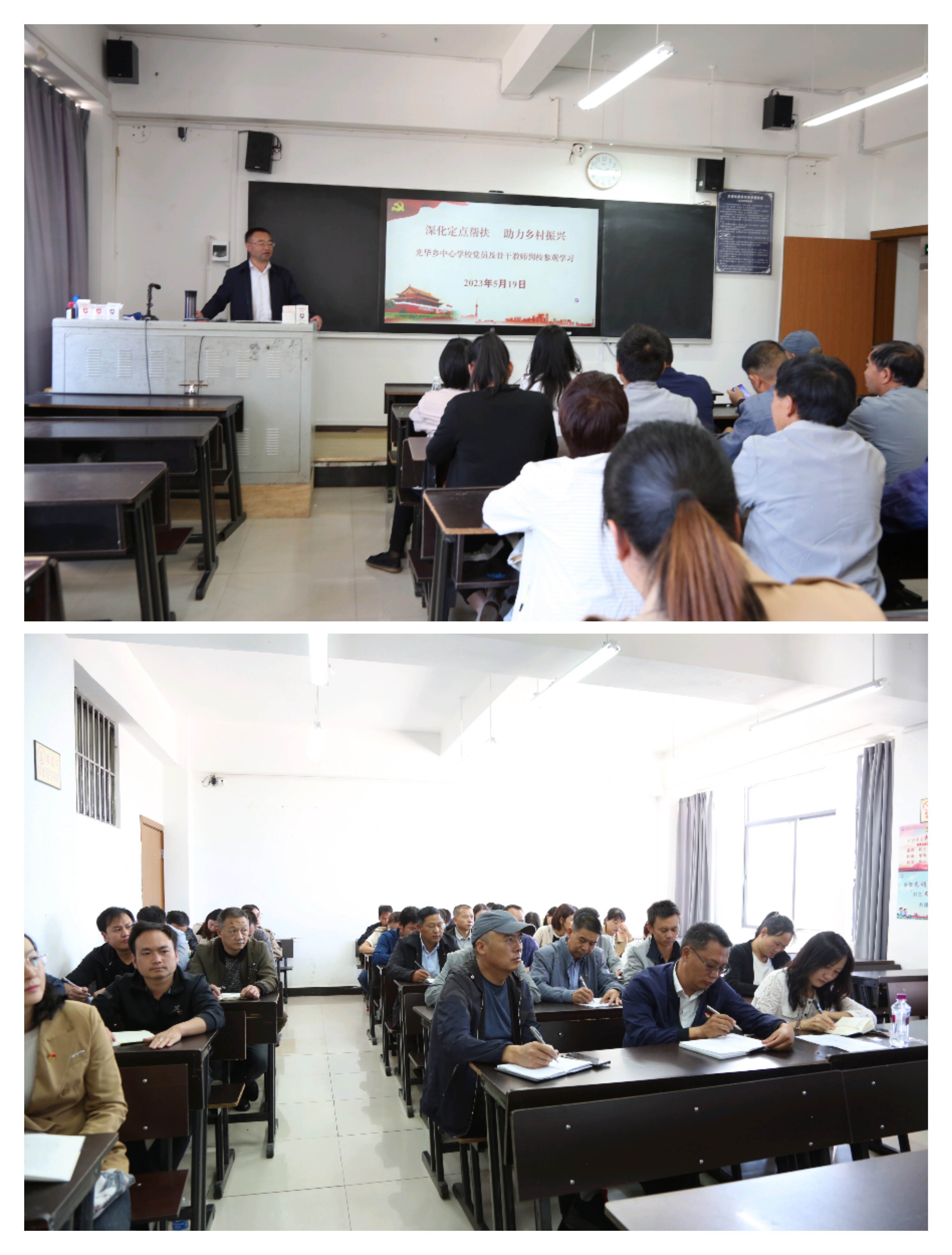 为全面贯彻落实党的二十大精神和习近平总书记关于“三农”工作的重要论述,持续巩固拓展脱贫攻坚成果,扎实推进教育帮扶,助力乡村振兴。5月19日,光华乡中心学校李文飞校长一行35名党员及骨干教师到学校参观学习。