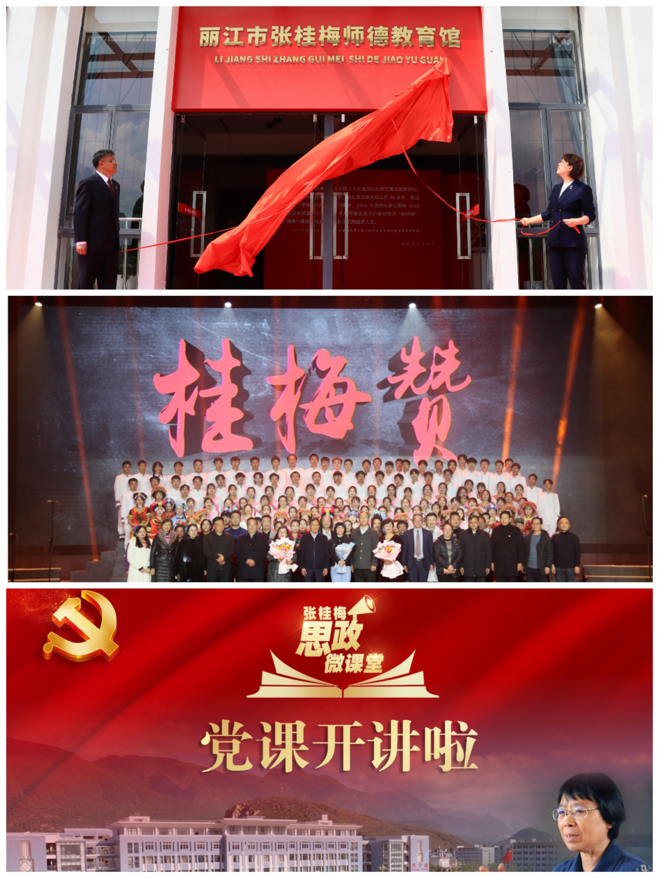 张桂梅是丽江师范高等专科学校(原“丽江教育学院”)1990届中文专业毕业生。她坚守教育报国初心,牢记立德树人使命,扎根祖国西南边疆40多年,立志用教育扶贫斩断贫困代际传递,倾力建成全国第一所全免费女子高中,让2000余名贫困山区女学生圆梦大学;她坚守初心、对党忠诚的崇高品格,爱岗敬业、爱生如子的高尚师德,执着奋斗、无私奉献的至诚情怀,是广大师生学习和践行的宝贵精神财富。