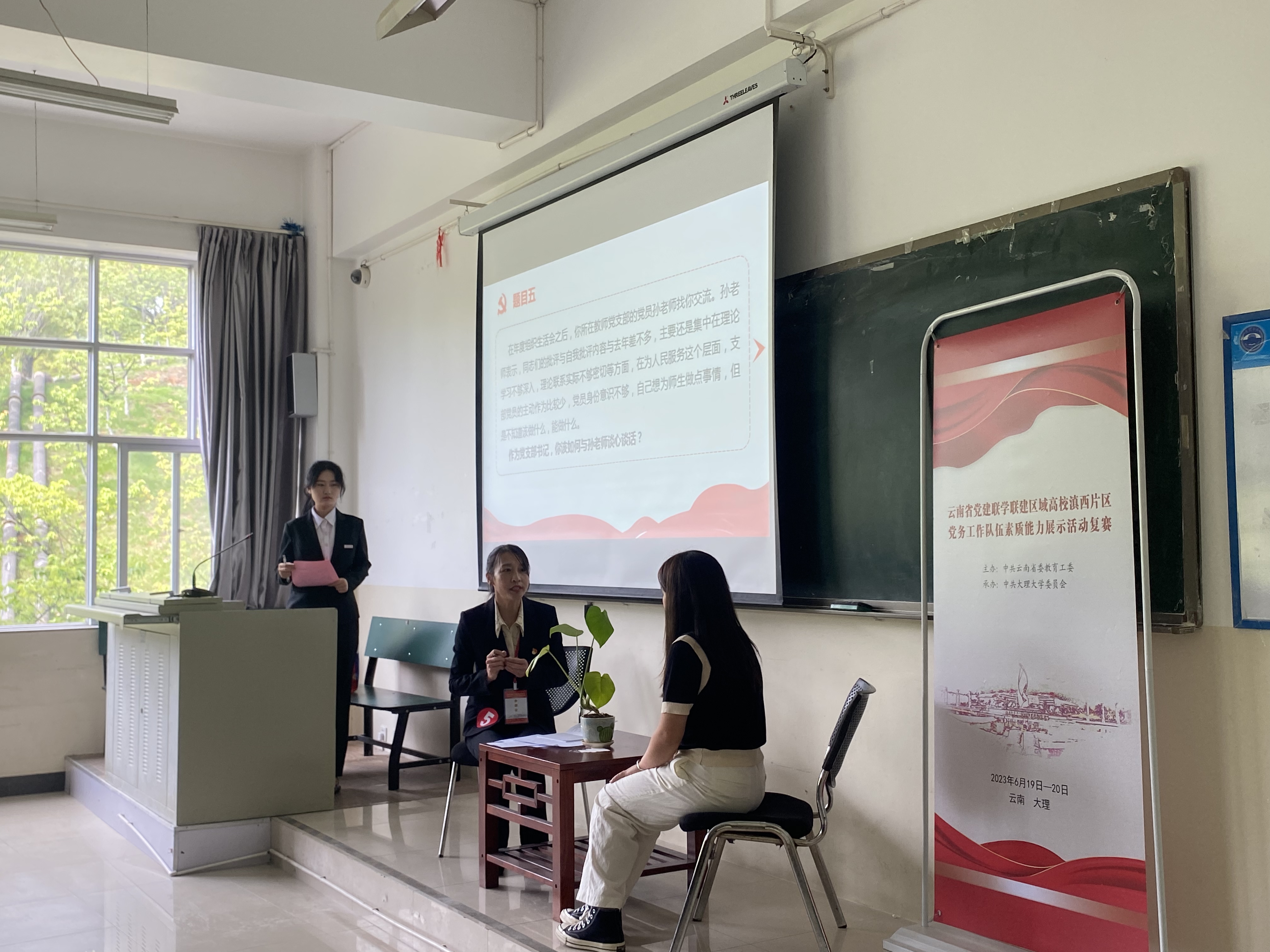 6月19日—20日,云南省党建联学联建滇西片区高校党务工作队伍素质能力展示活动(复赛)暨党建工作交流会在大理大学古城校区举行,来自滇西片区16所高校推荐的参赛队员参加活动,43名党务工作者分为“双带头人”教师党支部书记组、学生党支部书记组、专职组织员组三个组分别进行了评比和展示,经过党务工作创新案例和谈心谈话环节的比赛,评出各组一等奖2名、二等奖4名、三等奖6名,bat365官网2名参赛选手胡荣、自菊春荣获二等奖。