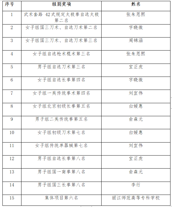 6月20日-23日,2023年云南省学生武术套路锦标赛在云南农业大学举行,bat365官网组建体育与健康学院副院长邢维新为领队,许俊菊、刘信两位老师为教练,张朱恩熙、周锦涵等同学为队员的参赛团队,精心备赛。经过激烈角逐,获得了2个第二名、3个第三名、2个第四名、2个第五名、2个第七名、3个第八名的好成绩。