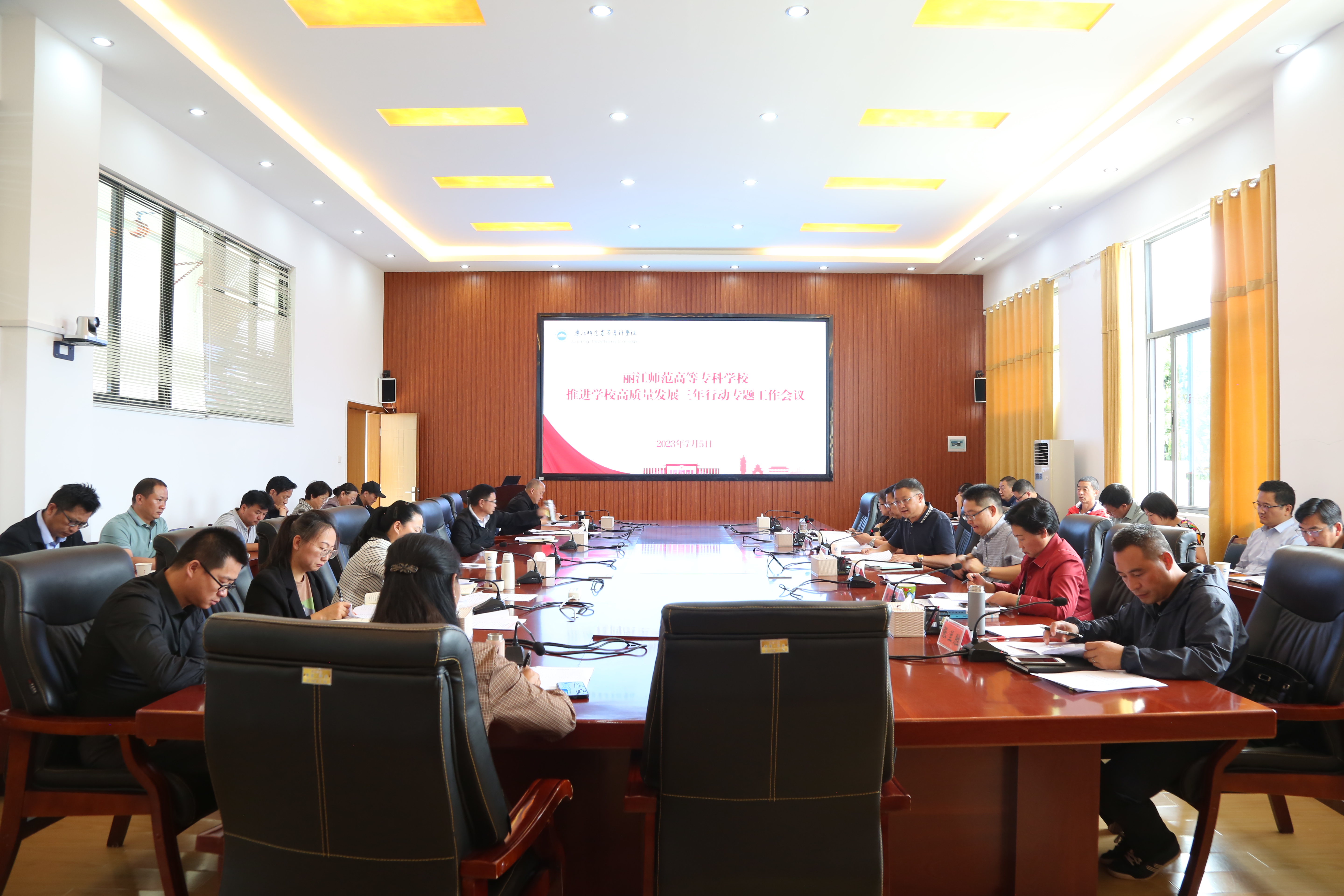 党委副书记、校长陈本辉安排部署相关工作。陈本辉要求,学校要抢抓机遇、善抓机遇,以“四个聚焦”为抓手,着力推进学校高质量发展三年行动各项任务落实落地。要聚焦服务定位,抓准学校特色,服务地方区域经济发展;要聚焦发展目标,坚持问题导向,加速补短板强弱项扬优势;要聚焦重点任务,围绕项目化清单化,科学合理推进各项工作;要聚焦责任落实,加强联动协同,确保学校高质量发展三年行动方案高质量完成。