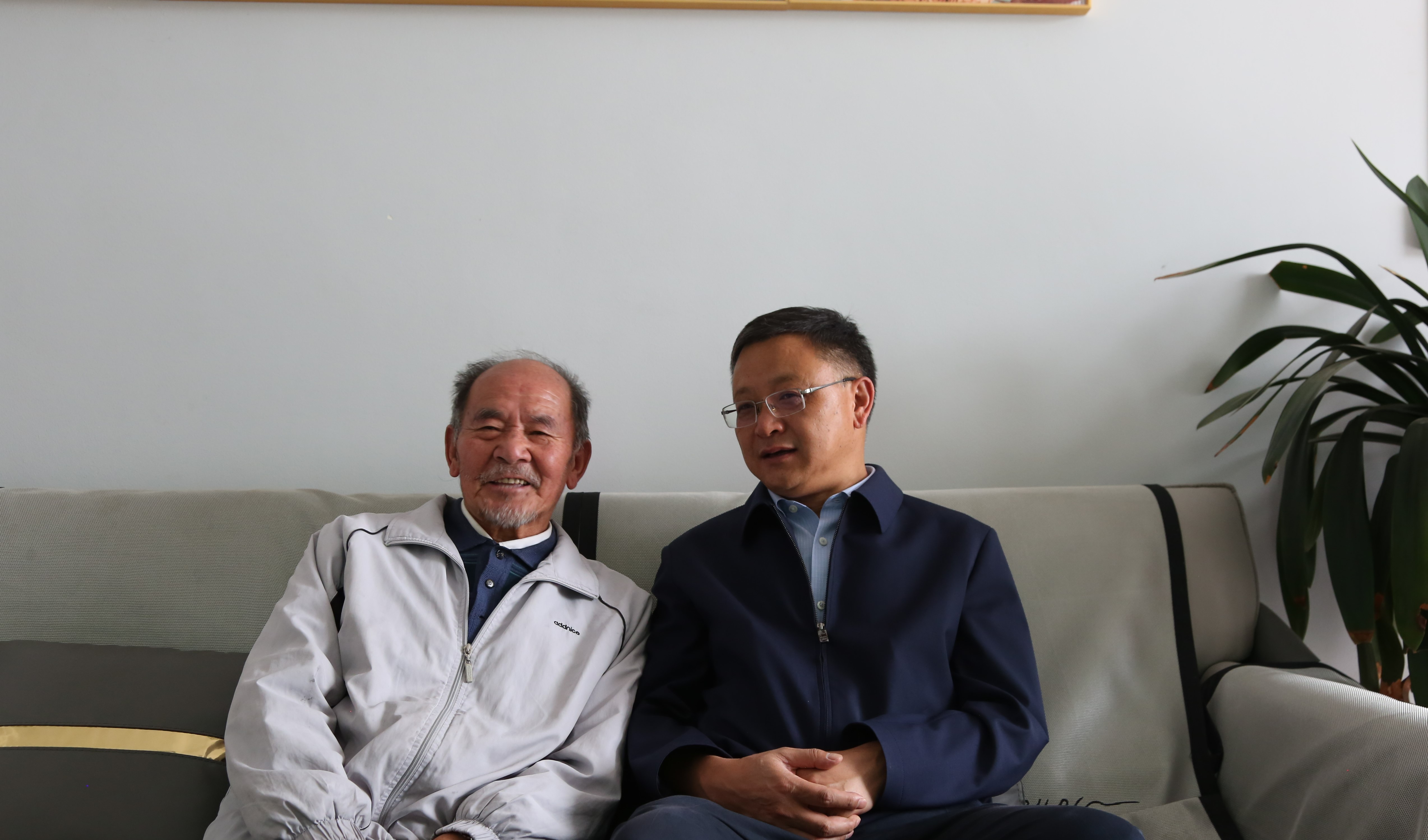 在老党员和树本家中,毕天云与和树本老师亲切交谈,详细了解他的健康、生活情况并向他介绍了学校基本情况、基础设施改扩建进展和未来愿景。