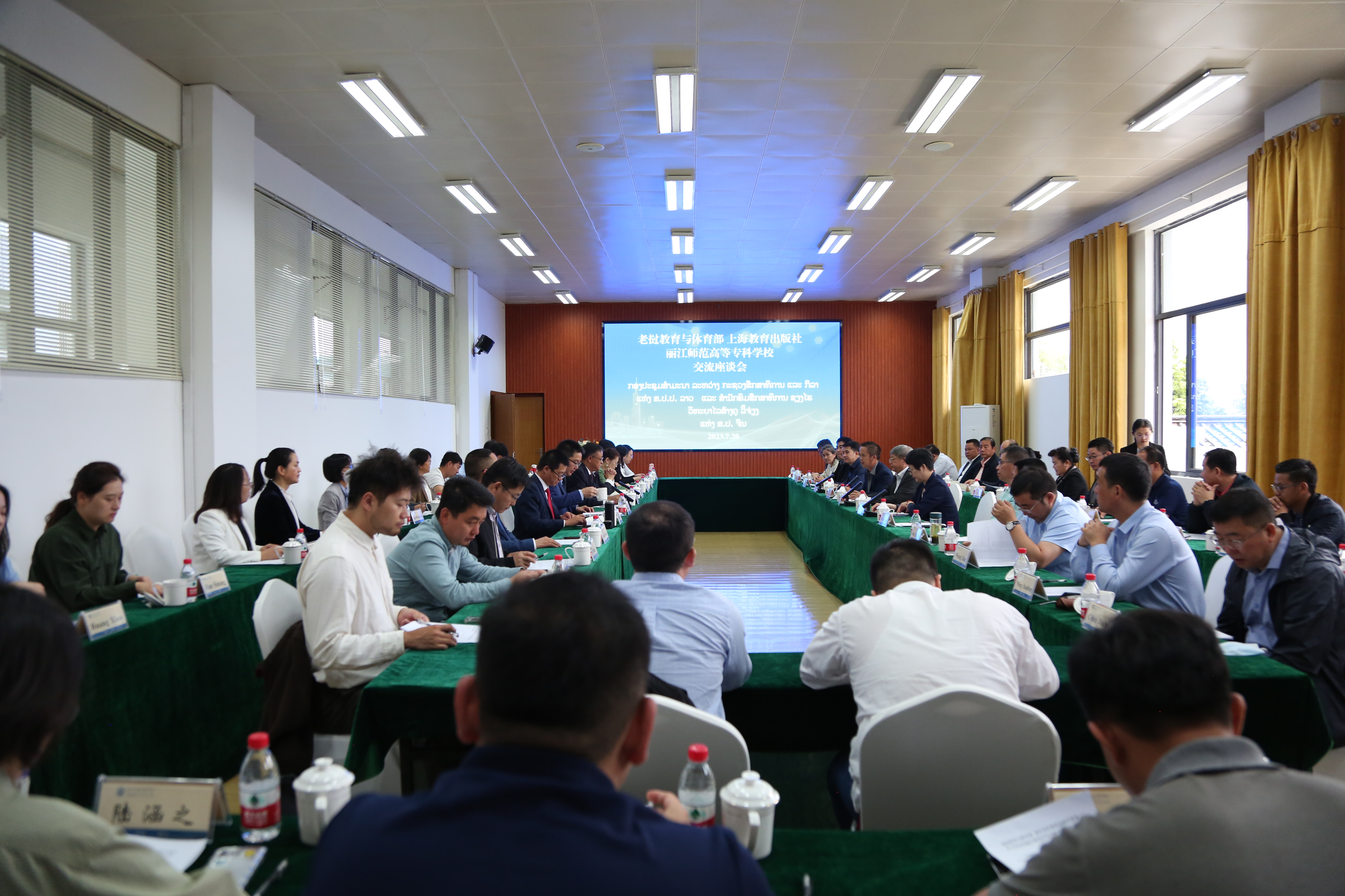 7月20 日,由老挝教育与体育部、老中合作委员会、上海教育出版社组成的访问团到bat365官网访问参观。上午8时30分,访问团成员在bat365官网校务管理中心第四会议室召开交流座谈会。 老挝教育与体育部、老中合作委员会相关领导专家,老挝校长、教师培训教材编写专家,老挝国家ICT标准及教材编写专家,上海教育出版社相关专家和负责人,bat365官网校领导及有关部门负责人参加座谈会。座谈会由bat365官网党委书记毕天云主持。
