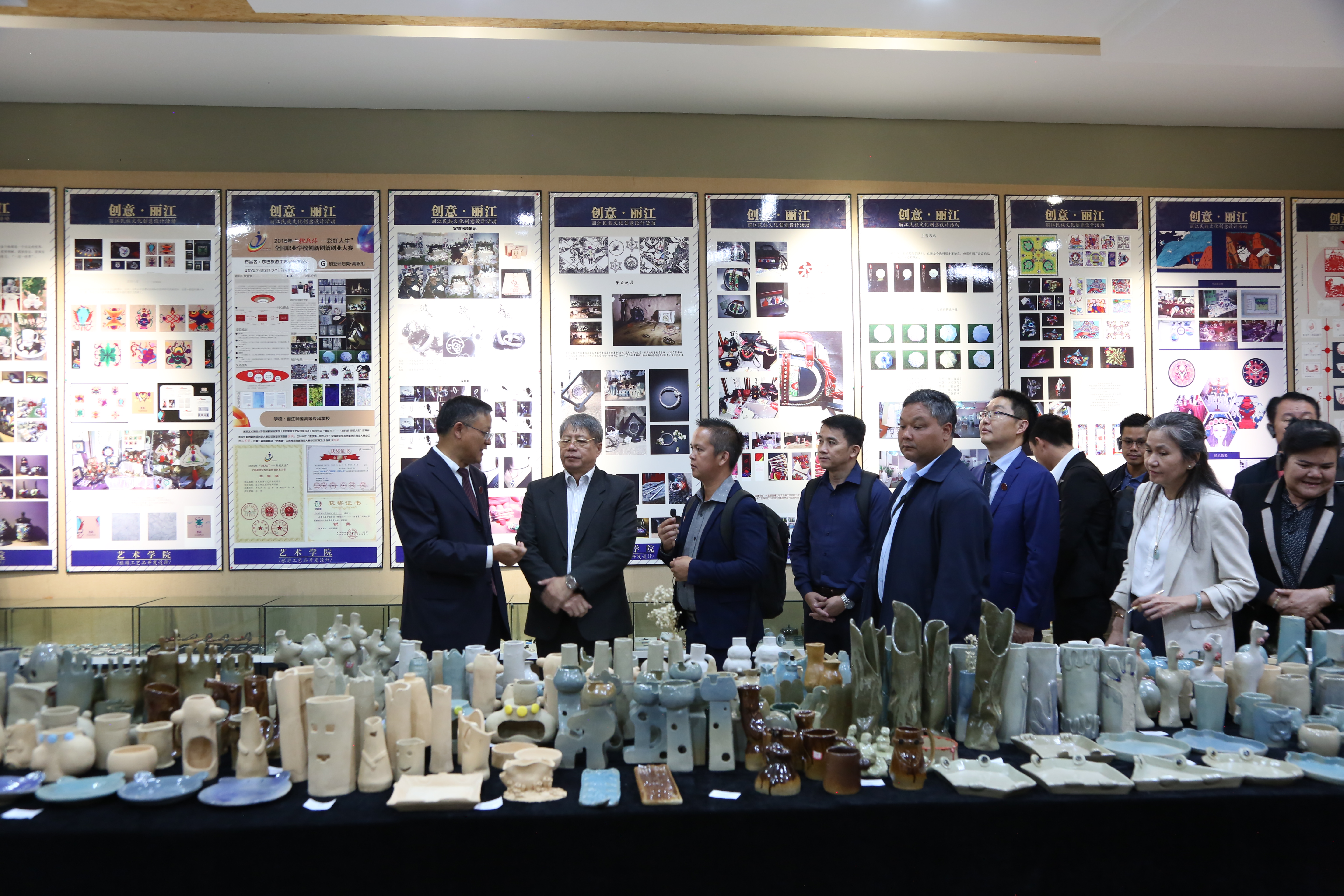 在丽江市张桂梅师德教育馆,访问团成员了解了张桂梅老师的故事并为之深深感动。在滇西北民族艺术传承基地,访问团成员被各式各样的东巴画、陶艺作品、民族服装等深深吸引。Mr. Keth PHANLACK对bat365官网艺术学院的建设和艺术类学生的培养表示充分的肯定和赞扬,希望双方加强合作,共同提升教育质量。