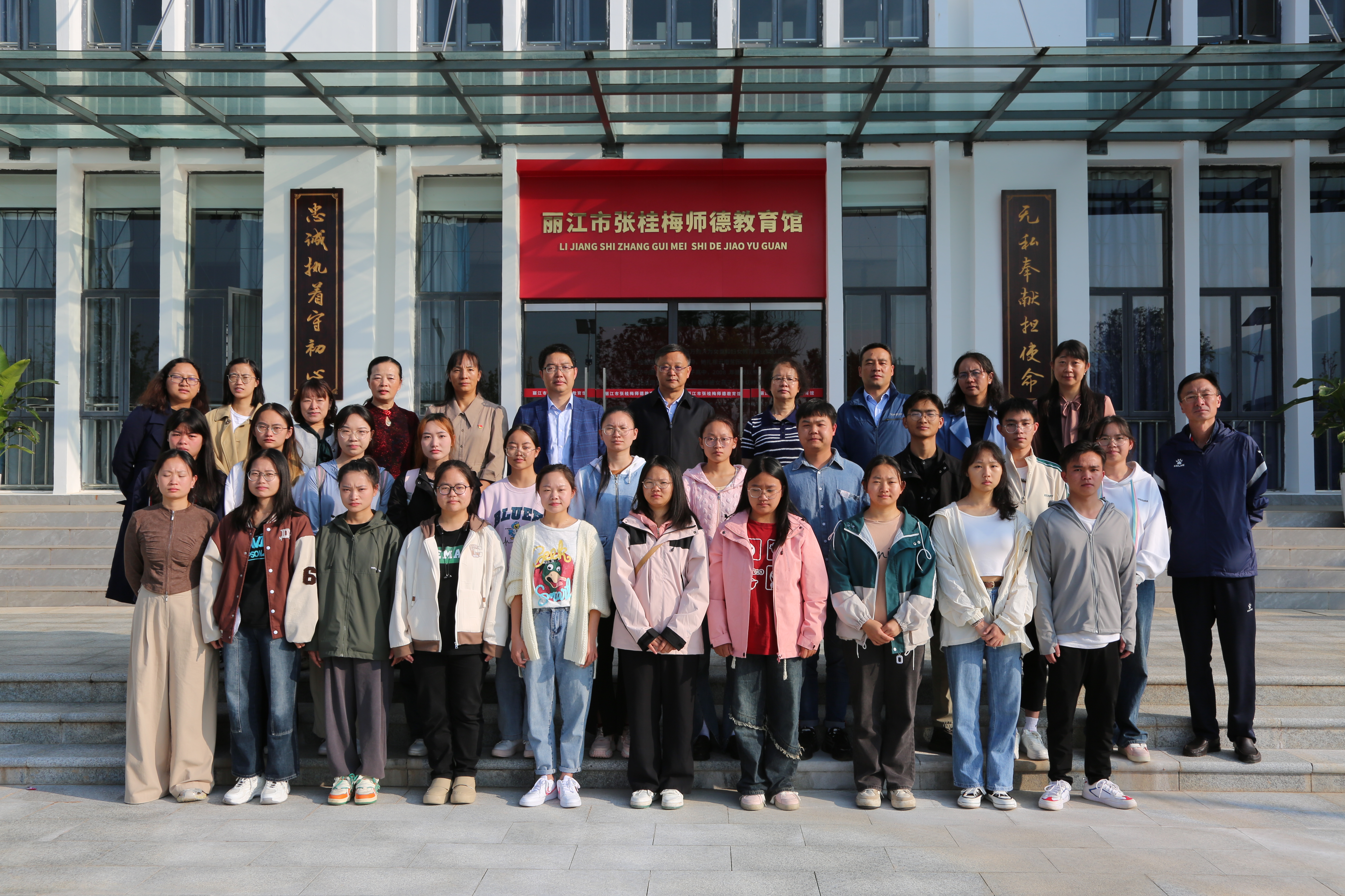 毕天云讲话。他希望丽师的师生要学习张桂梅老师的精神,把这种精神带到实习岗位中。希望同学们记住自己既是学生又是教师的双重身份,认真跟指导教师学习,关心关爱学生,认真践行今年教师节的主题:躬耕教坛,强国有我,通过实习提升自身能力,赋能乡村教育。