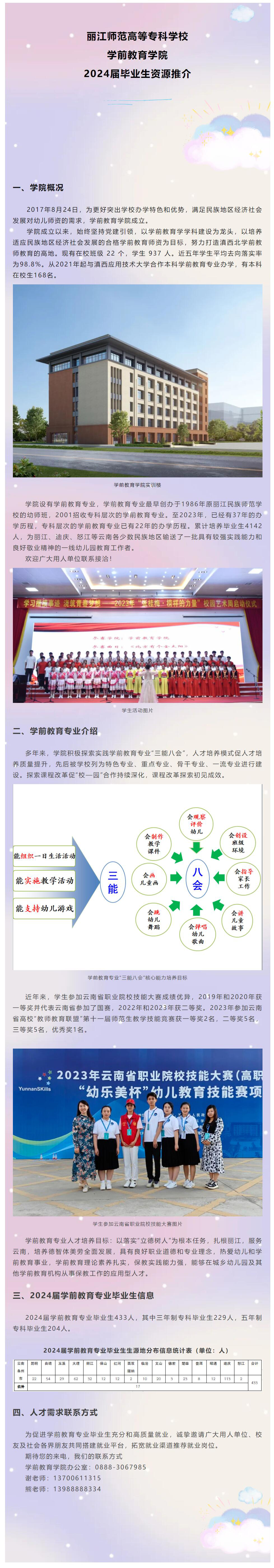 丽江师范高等专科学校学前教育学院2024届毕业生资源推介