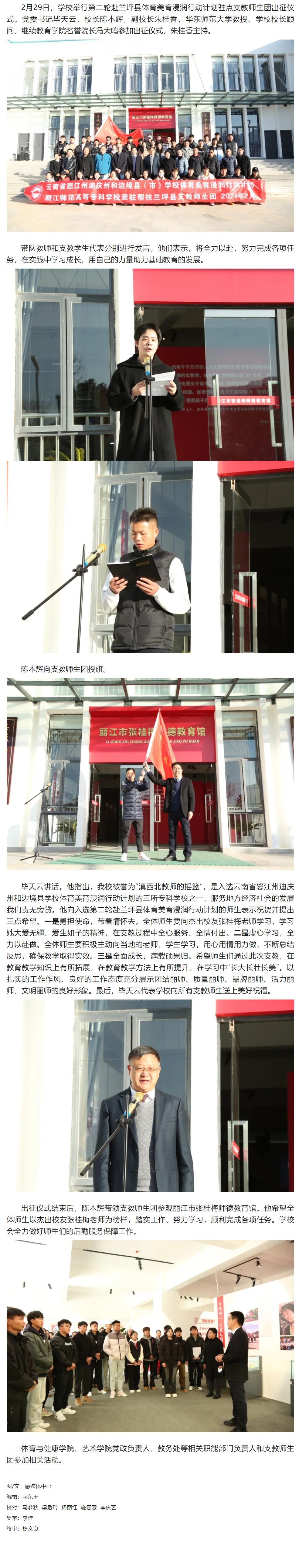 学校举行第二轮赴兰坪县体育美育浸润行动计划驻点支教师生团出征仪式