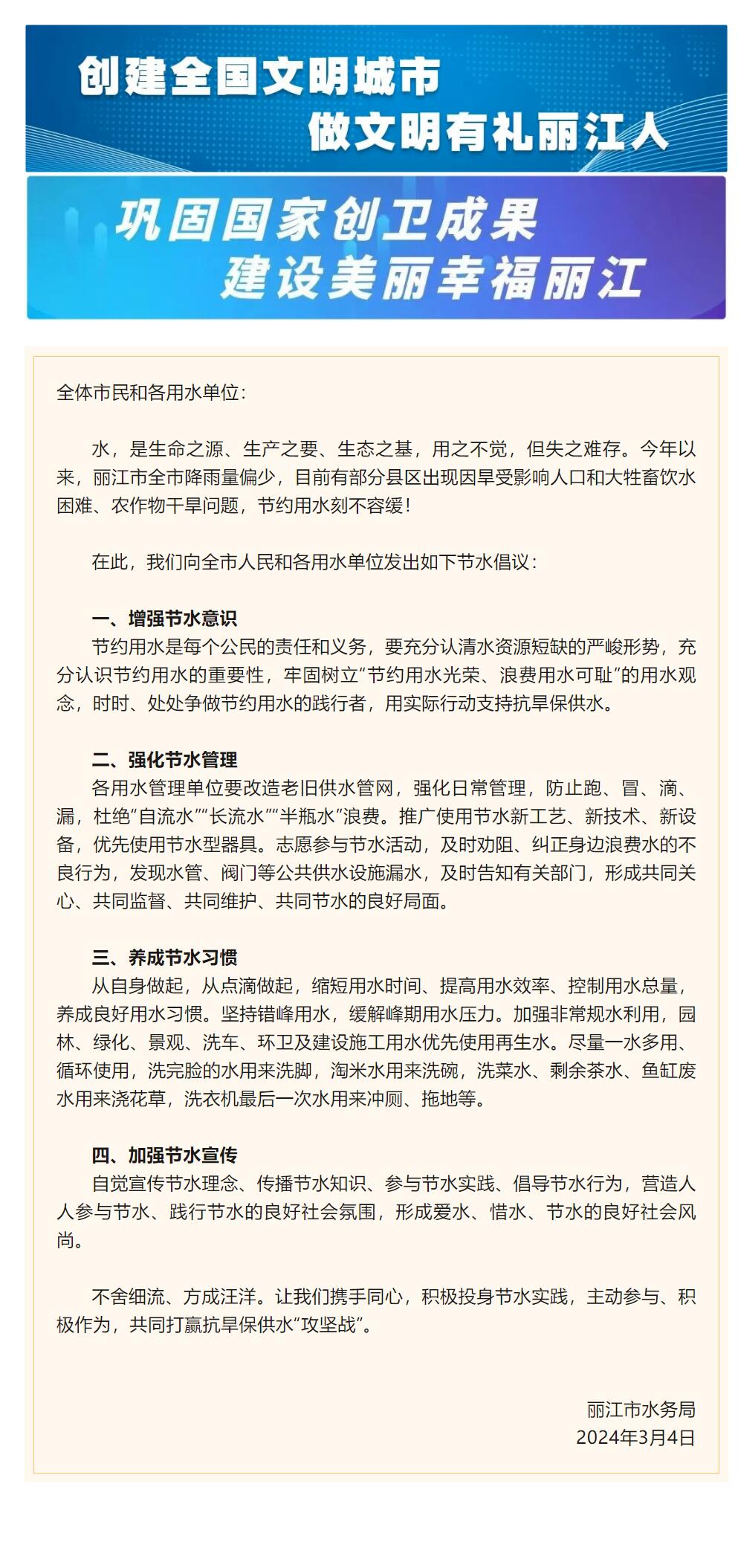 节约用水倡议书