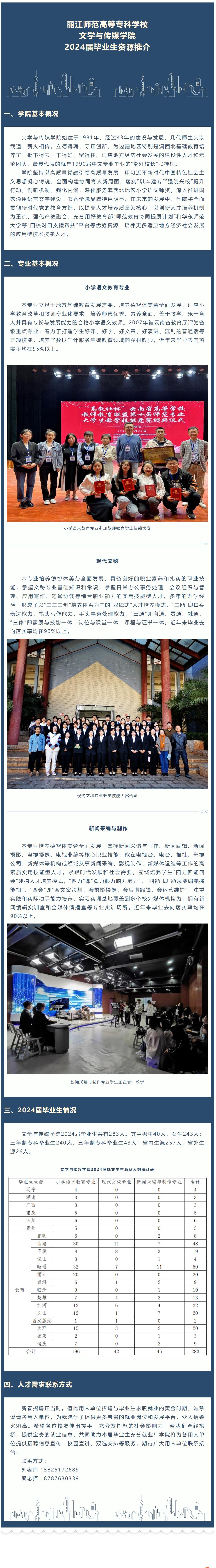 丽江师范高等专科学校文学与传媒学院2024届毕业生资源推介