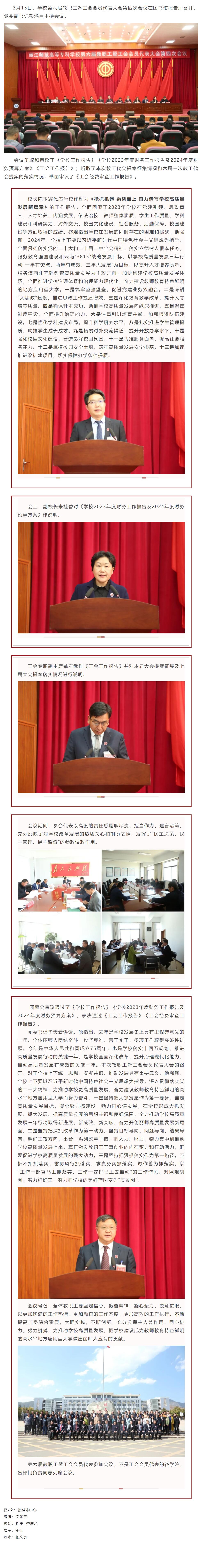 学校召开第六届教职工暨工会会员代表大会第四次会议
