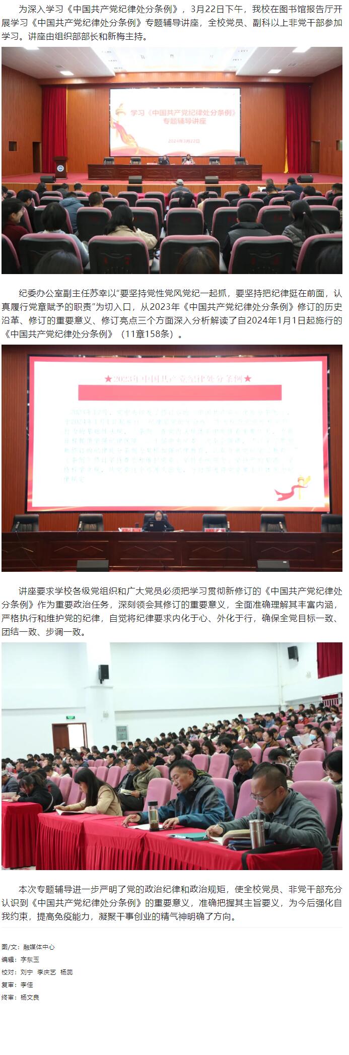 学校开展学习《中国共产党纪律处分条例》专题辅导讲座