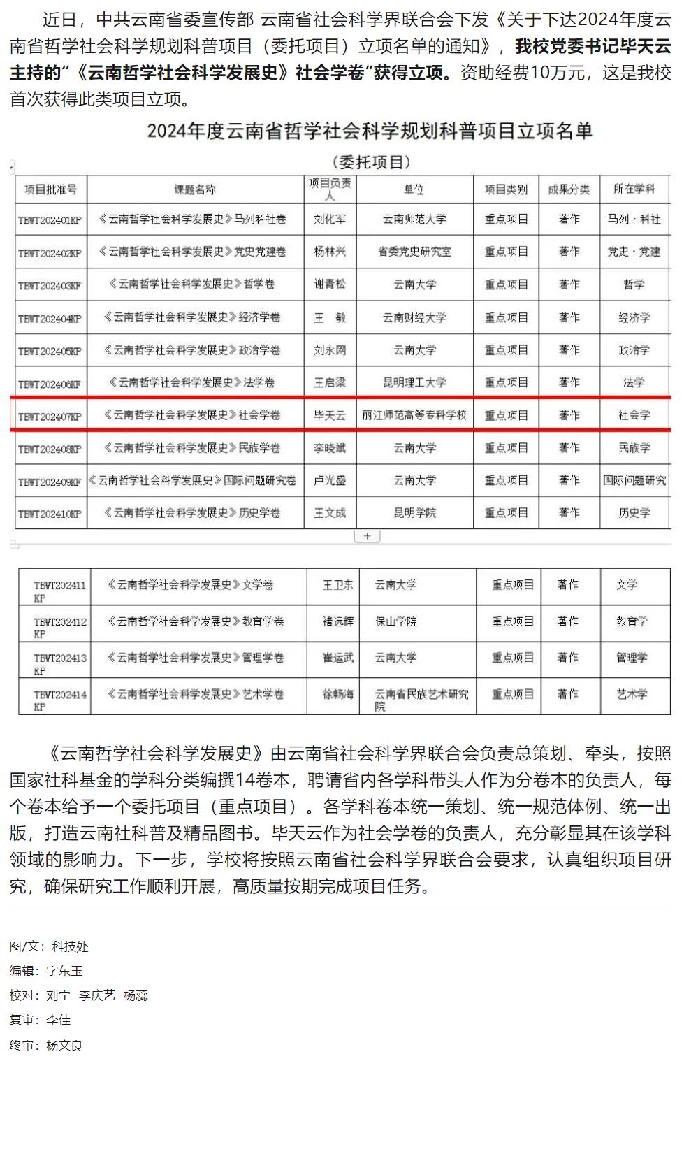 喜讯 | 学校获2024年度云南省哲学社会科学规划科普重点项目(委托项目)立项