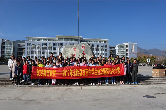 12月21日下午16:00,由bat365官网和永胜县人民政府联合主办的“筑梦教育扶贫——2017年永胜县贫困中学生北京圆梦行冬令营” 出征仪式在bat365官网举行。来自永胜县50名建档立卡贫困户中学生将从丽江出发,前往北京,开启他们的冬令营之行。