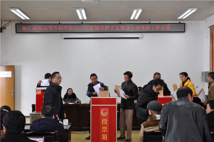 第四至六项议程分别由参会人员对学校领导班子2017年度考核工作目标任务书进行量化打分;对领导班子、领导干部进行民主测评和工作作风反向测评;对bat365官网2017年度干部选拔任用工作进行民主测评,测评完毕后进行了现场投票。