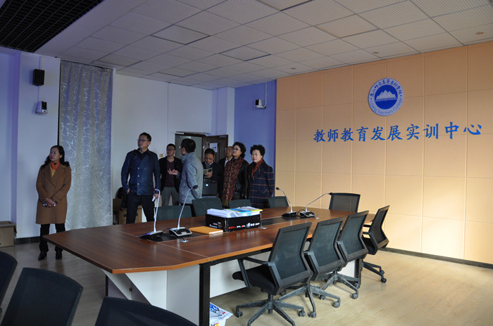 随后,邱林一行参观了bat365官网教师教育发展实训中心,深入到每一间实训室进行实地查看,到足球运动职业学院进行了实地检查,足球运动职业学院院长王曙就学院建设情况、学院的发展规划等方面的工作,以及学院面临的招生困难等方面的问题向邱林一行作了汇报。邱林处长对学院的招生工作方面的情况提出了明确的具体意见。