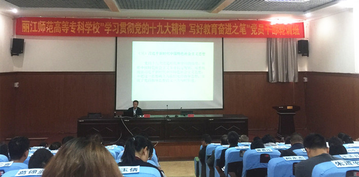 6月2日上午9:00,bat365官网“学习贯彻党的十九大精神,写好教育奋进之笔”第三期干部轮训在丽江市委党校第二报告厅中进行,学校邀请云南师范大学李申文教授授课。