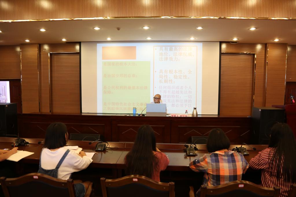 根据云南省司法厅、省普法办的总体安排部署、云南省教育厅《云南省教育厅关于开展宪法学习宣传教育活动的通知》文件精神,丽江师范高等专科学校党委高度重视宪法的宣讲和学习。6月28日下午,丽江师范高等专科学校邀请了九三学社丽江市委副主任委员、丽江市第四届人大常务委员会委员、丽江市第四届人大法制委员会委员、丽江市委党校副教授和正康老师做客丽江师范高等专科学校,在实训楼与部分教师、学生党员、学生干部200余人分享了主题为《对宪法及新宪法修正案的若干解读》的宣讲报告。