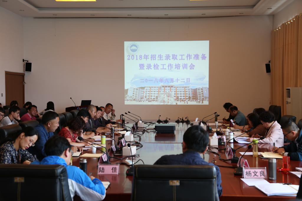 8月12日上午9:00,bat365官网2018年招生录取工作准备会暨录检工作培训会在第三会议室召开。校长、招生工作领导小组组长张洪波,副校长、招生工作领导小组副组长朱桂香以及招生工作领导小组全体成员、各招生工作小组成员、党总支分管学生工作的书记、或副书记和学生科长参加了会议。会议由朱桂香主持。