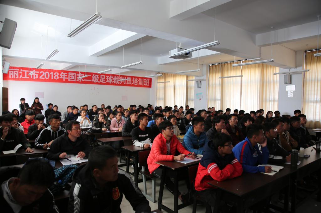 2018年10月27日,“2018年丽江市国家二级足球裁判员暨国家二级社会体育指导员培训班”在丽江师范高等专科学校艺术楼演播厅举行开班仪式。