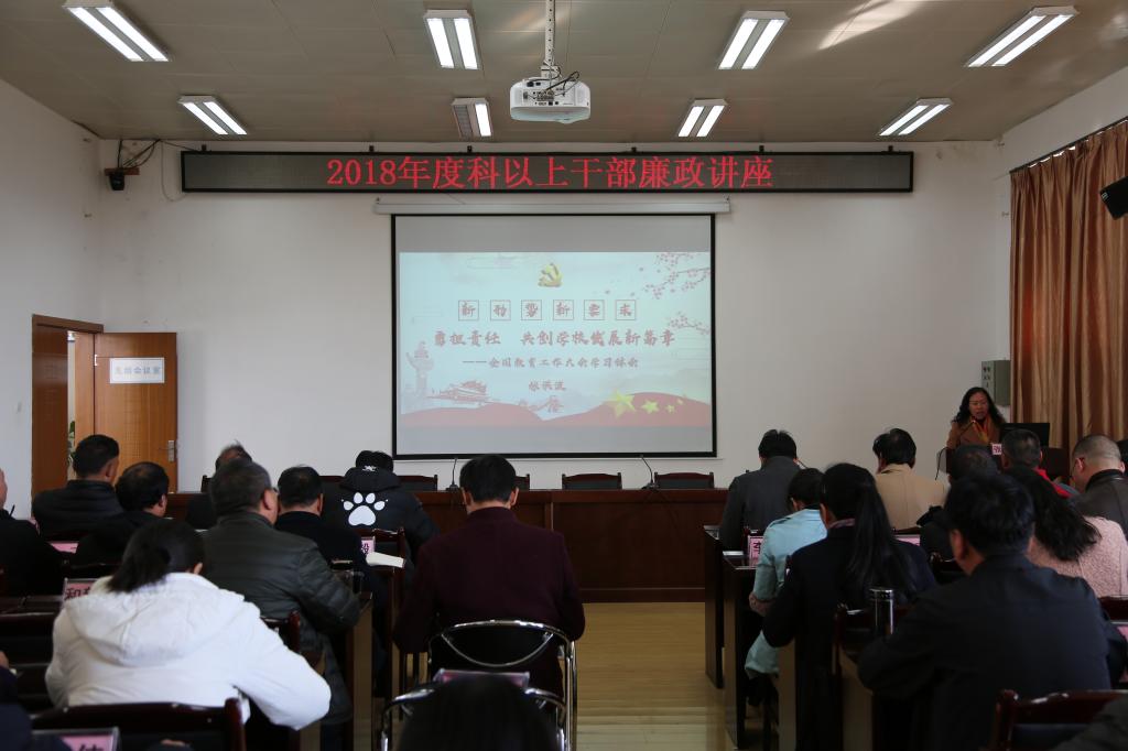 11月26日下午,bat365官网在第四会议室举行科以上干部廉政讲座,全校科以上干部共120余人参加。校长张洪波进行授课。