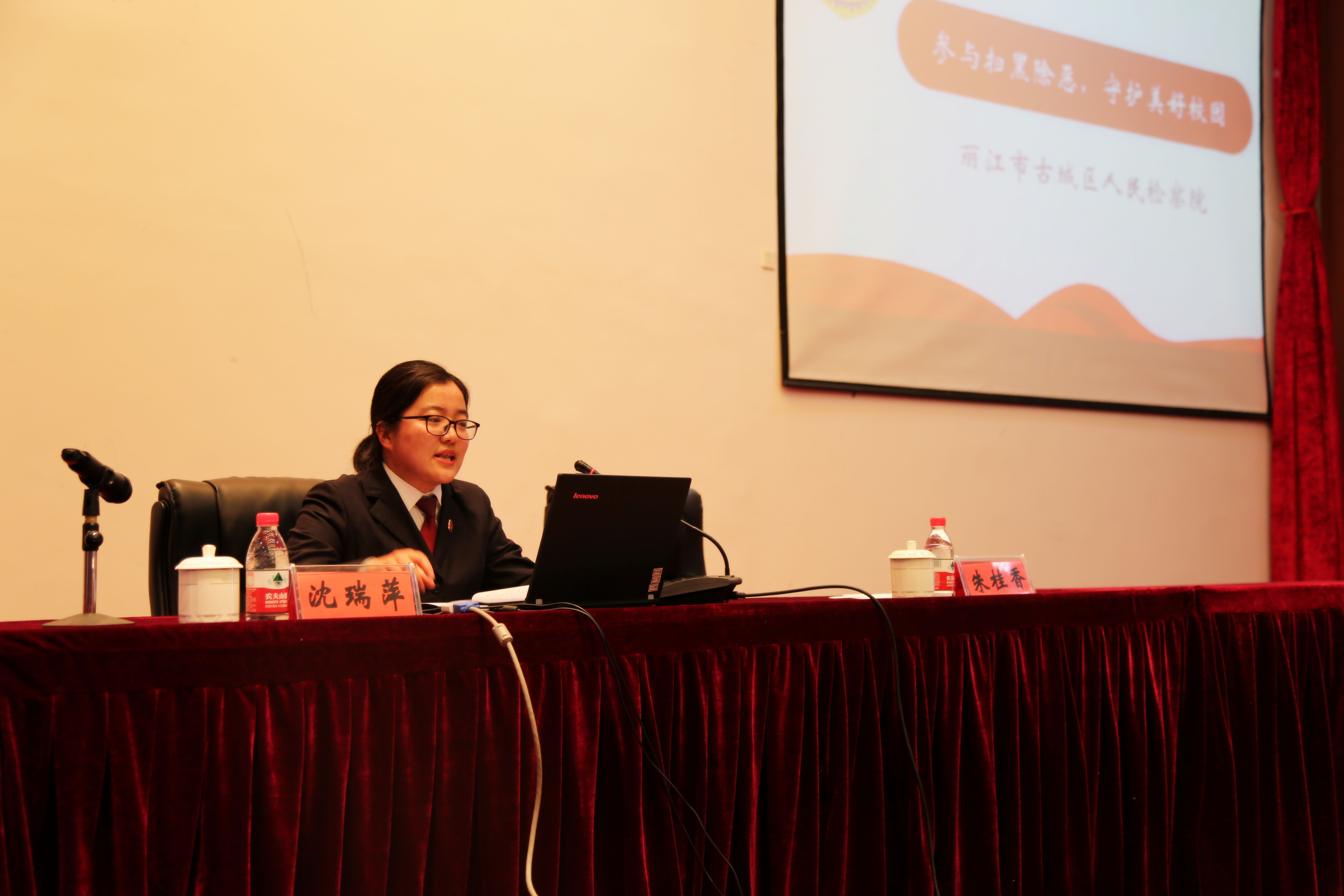沈瑞萍检察官结合自己多年来的从业经历经验,分别从 “扫黑除恶专项斗争的基础知识”“扫黑除恶斗争与青少年的关系”及“扫黑除恶中的校园贷套路贷的问题”三个方面,对我们身边与扫黑除恶相关的内容给大家做了详细的介绍,指出开展扫黑除恶专项斗争的必要性、迫切性、重要性,提醒教育校园师生防范“校园贷”、“套路贷”,确保辖区校园环境的安全。