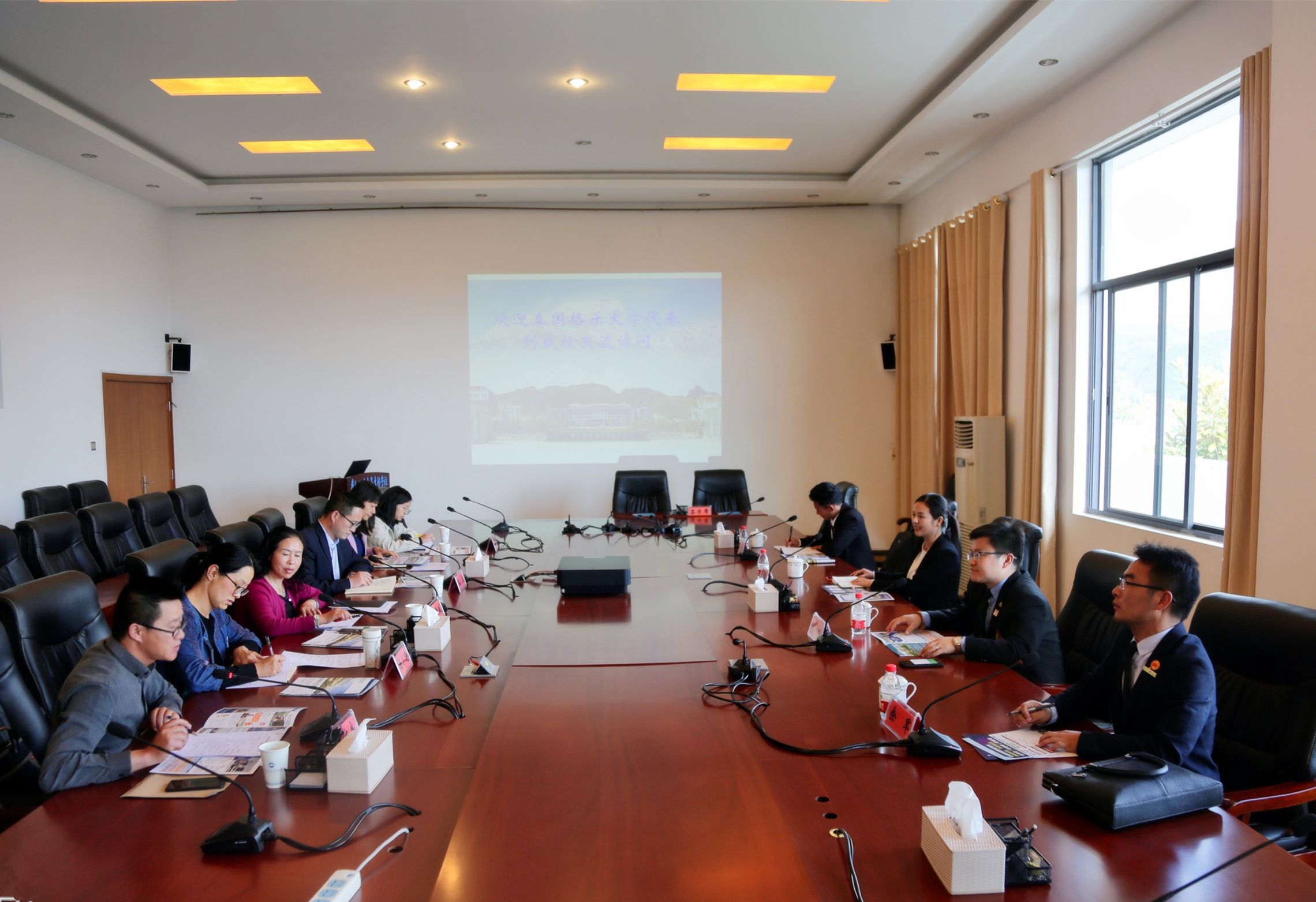 张洪波对泰国格乐大学的来宾表示欢迎。她向来宾介绍了bat365官网的院系设置、学科资源与师资力量等情况,并分析了bat365官网现有的学术特长与文化优势。她指出,bat365官网与泰国格乐大学不仅可以在语言领域进行交流合作,更可以在民族文化领域建立广泛合作关系。她希望构建两校长期的交流合作机制。