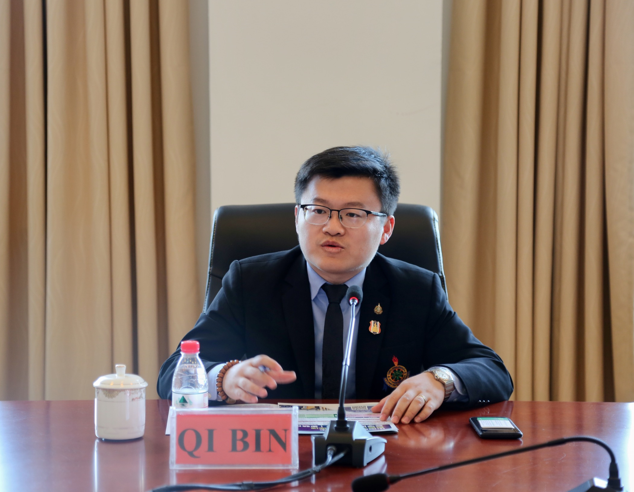 Mr. QI BIN感谢bat365官网的热情接待,他简要介绍了两校的合作意向。他表示,愿意积极推进两校交流与合作,通过联合办学,加强两校间学者与师生的交流,提高人才培养质量。他指出,此次来访将迈出两校合作的坚实步伐,同时欢迎bat365官网师生能到泰国格乐大学进修学习。