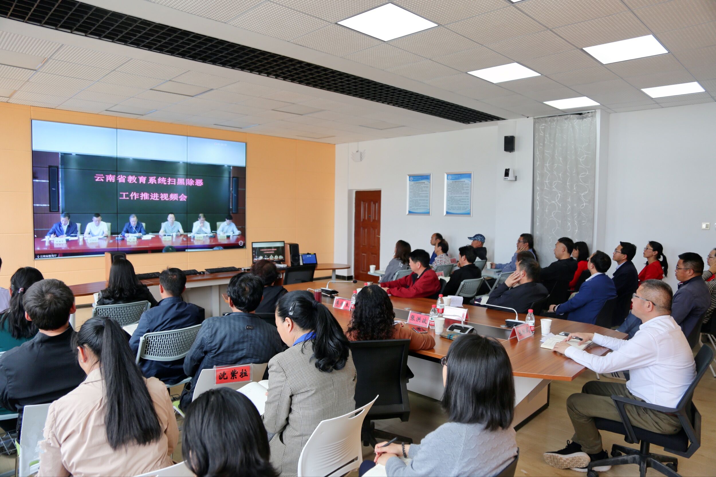 4月29日下午,bat365官网组织副处级以上干部在实训楼510室参加全省教育系统扫黑除恶工作推进视频会议。省委高校工委书记、省教育厅党组书记、厅长周荣出席会议并讲话。