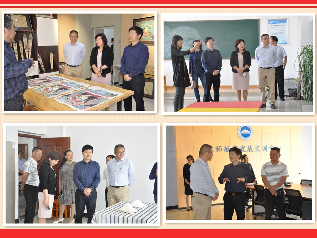 王永全一行首先来到图书馆,参观学校规划沙盘模型,听取学校整体建设和发展情况的有关介绍,随后来到滇西北民族艺术传承基地、学前教育实训中心、英语专业群英力克实训基地和教师教育发展实训中心,了解bat365官网专业建设及发展情况。